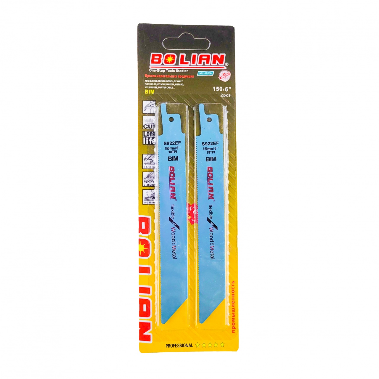 Полотно по дереву и металлу S922EF для сабельной пилы является эффективной и надежной оснасткой. Биметаллическое (BIM) узкое короткое полотно обладает повышенной гибкостью, изготовлено из углеродистой инструментальной стали с фрезерованными волнистыми зубами из быстрорежущей стали. В комплекте 2 пилки. Крепление на электрической сабельной пиле осуществляется с помощью L-образного хвостовика.