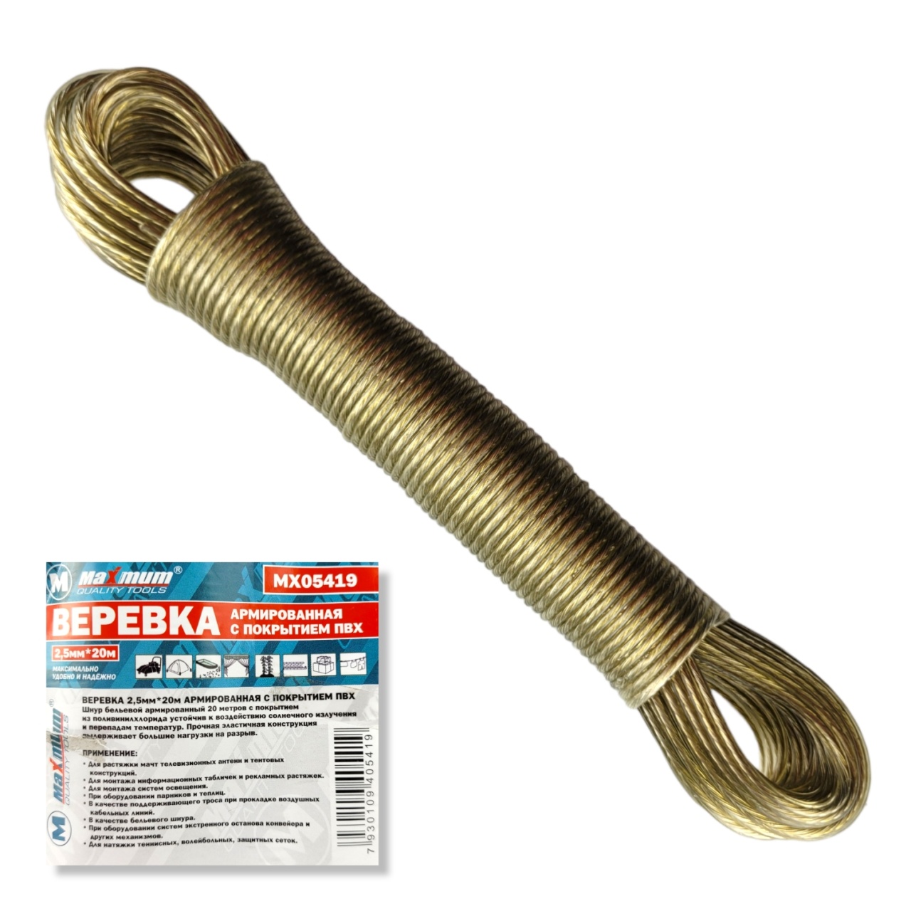Трос металлический 20 метров с покрытием из ПВХ не боится атмосферных осадков и перепада температур от – 40° до + 50 °. Он не провисает и способен выдерживать высокую нагрузку. Не оставляет грязных пятен на одежде и легко очищается.